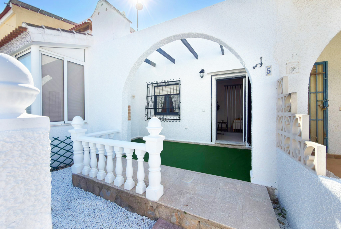 Z przyjemnością prezentujemy ten wyjątkowy i przytulny bungalow, położony w bardzo spokojnej dzielnicy mieszkalnej Laguna Azul (San Miguel – Villamartín). Nieruchomość znajduje się w pobliżu barów, restauracji oraz licznych punktów usługowych, takich jak supermarket Mercadona, czy apteka. Zaledwie 2 km dzielą ją od centrum handlowego La Fuente oraz pól golfowych Las Ramblas i Campoamor.